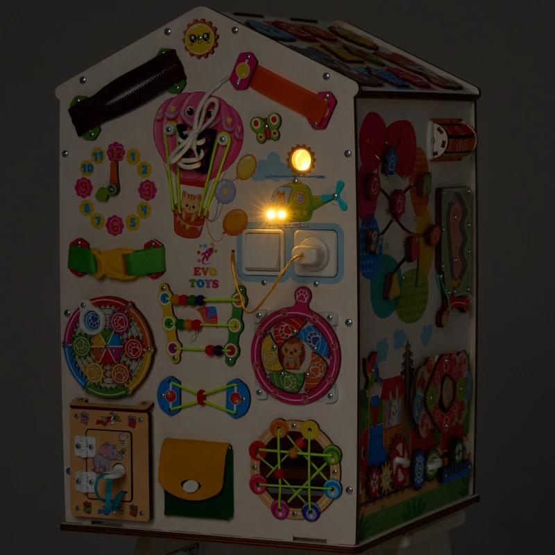 Бизиборд домик Карусель 30х35 см со светом