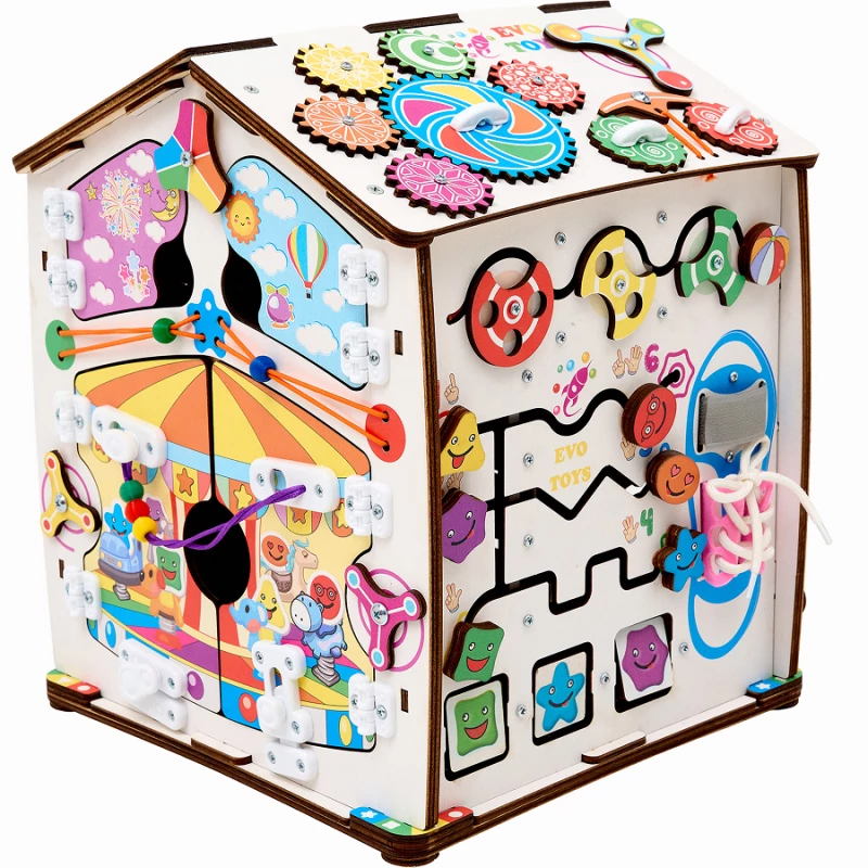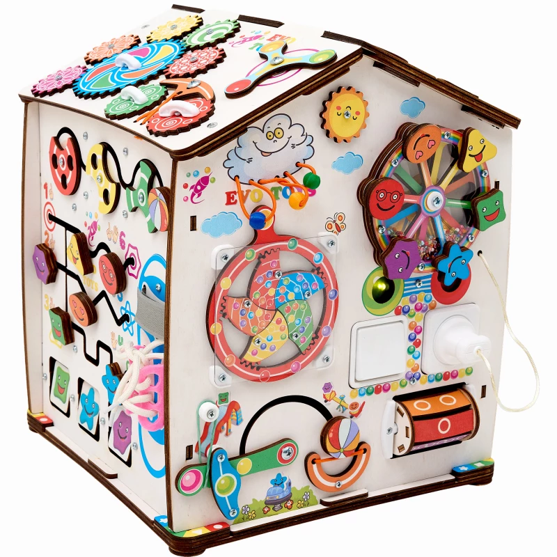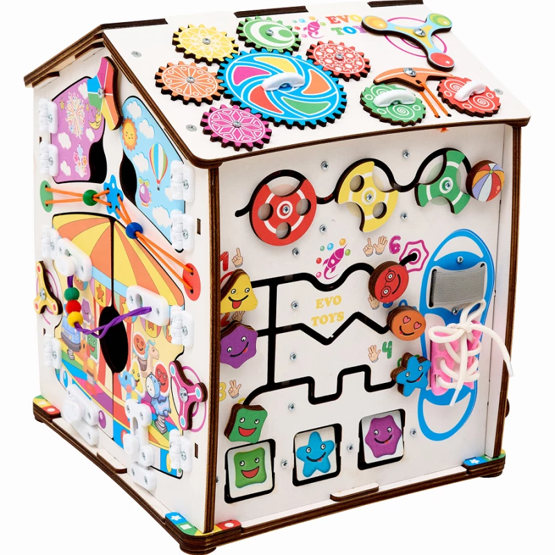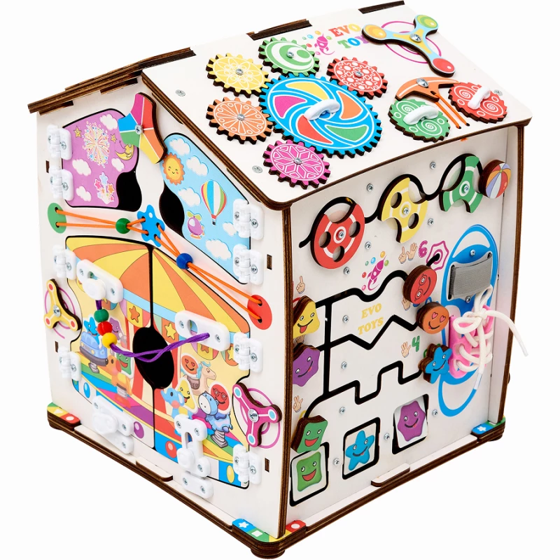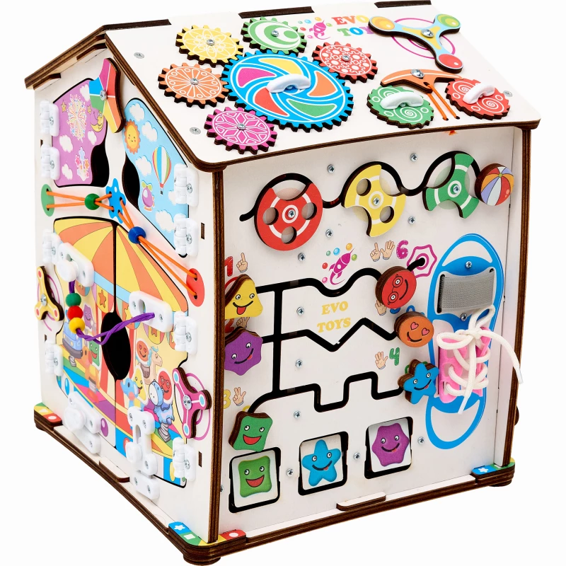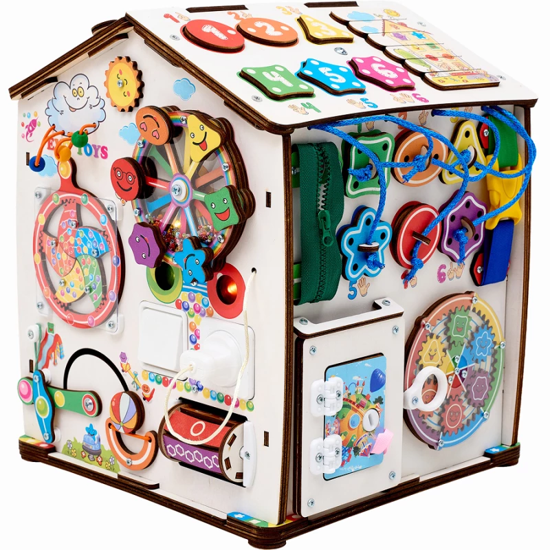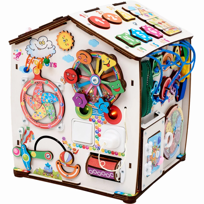 Также на игровых полях есть классические игры – лабиринты, сортеры, шнуровка, дверцы с замками. С их помощью ребенок учится считать, запоминает название геометрических фигур и становится более самостоятельным.