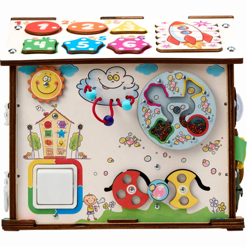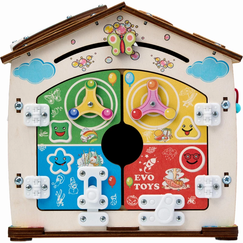 Бизиборд домик развивающий Смайлики на аттракционе со светом