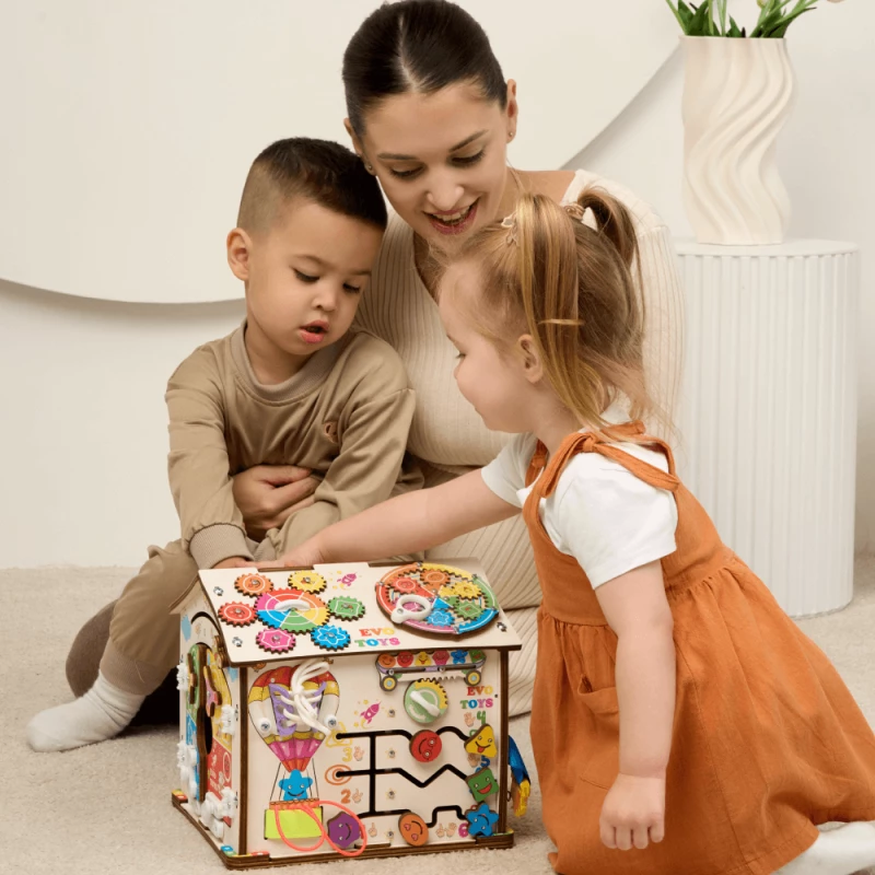 Большой развивающий бизиборд дом для детских зон и учреждений