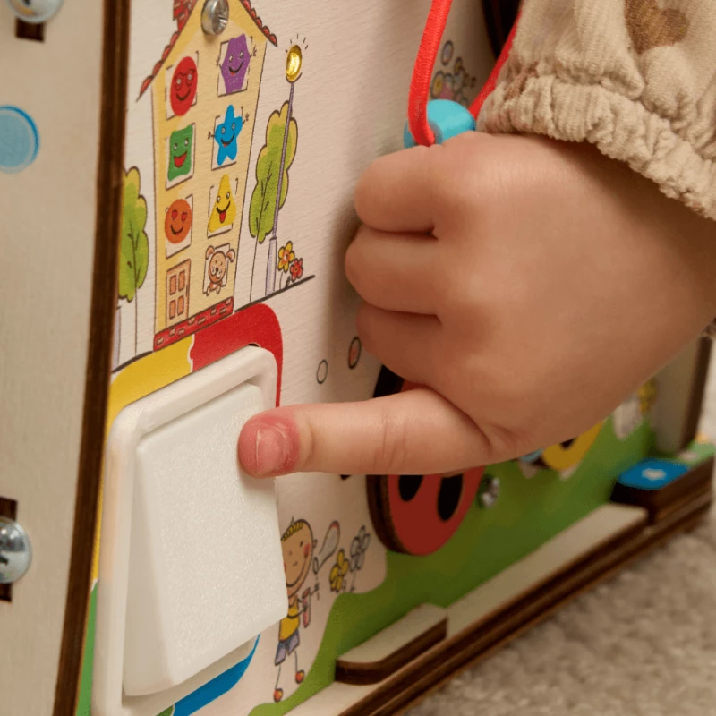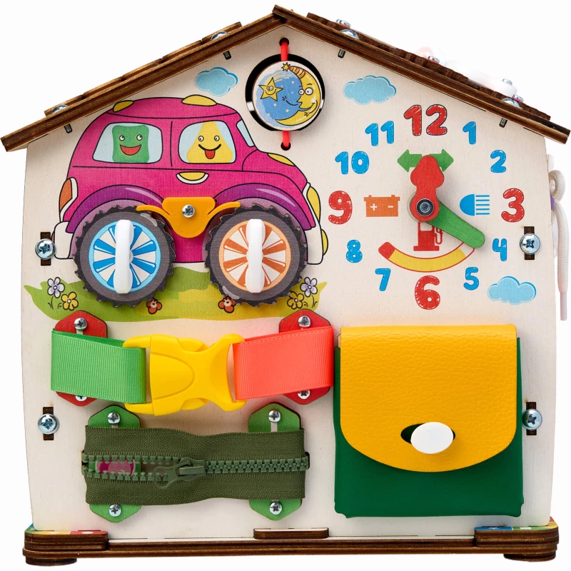 Бизиборд домик Смайлики на машинке 2.0 со светом